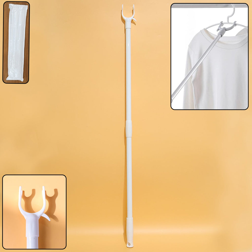 Helps hang or remove clothes without stretching or using a stool