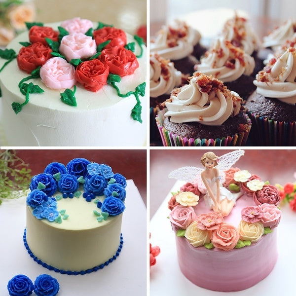 With a set of different pattern cake tips which you can create all types of beautiful patterns on cake, cupcakes, pie and biscuit.